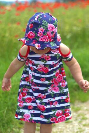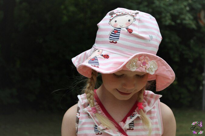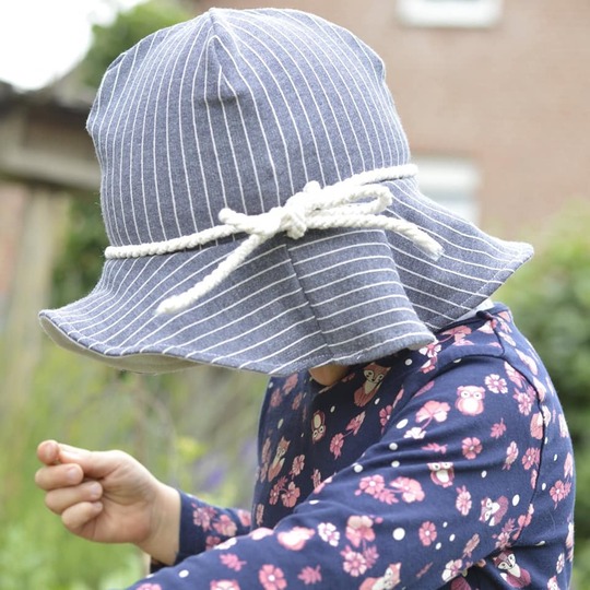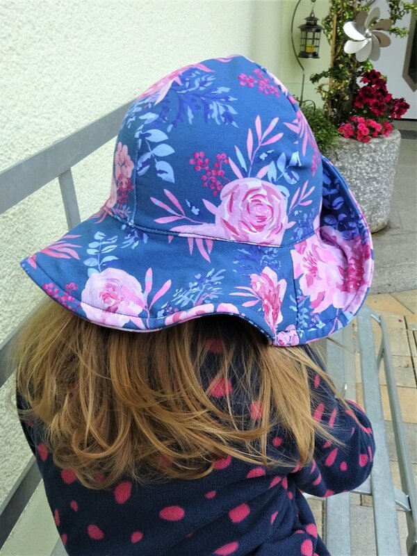 Daher habe ich mich nun entschieden, mit dem Sonnenhut Gabriel genau dieser Nachfrage gerecht zu werden: ein Sonnenhut, idealerweise für Sommersweatstoffe, die kleine Krempe ist auch für Jersey geeignet.
