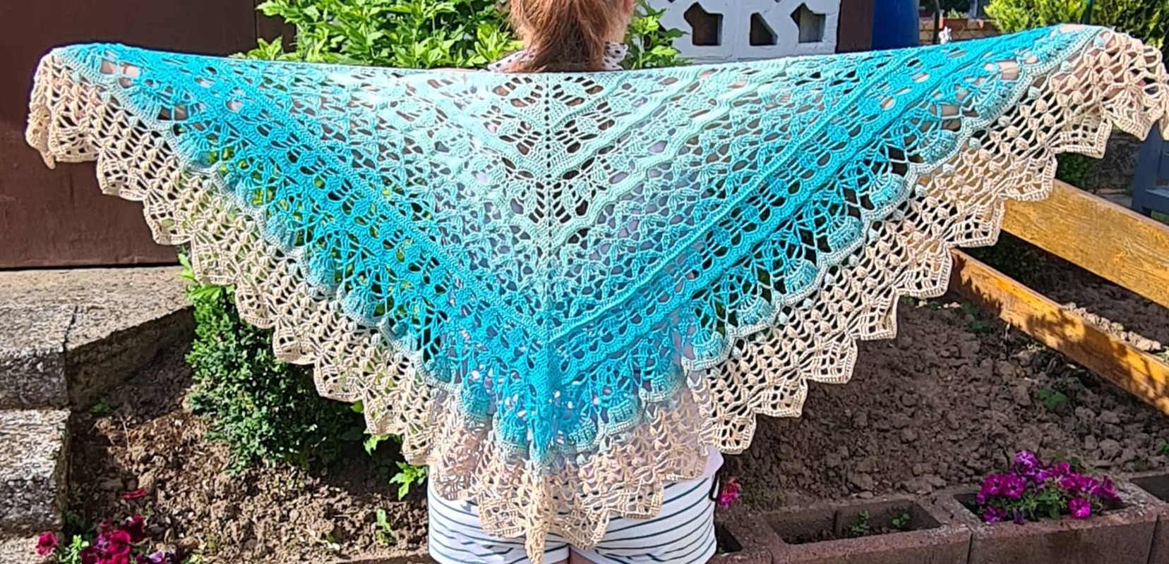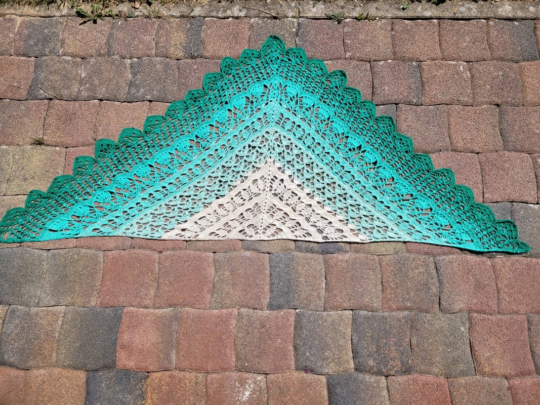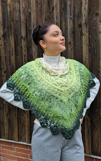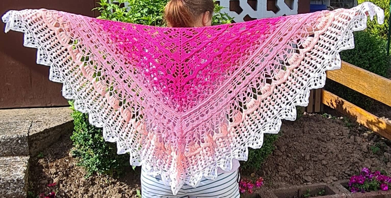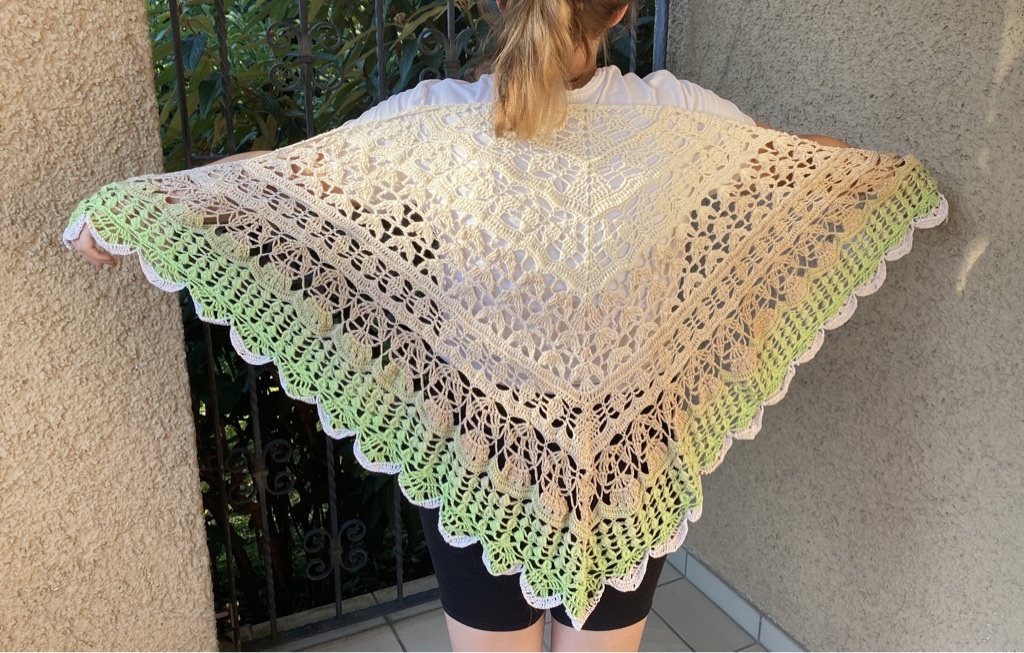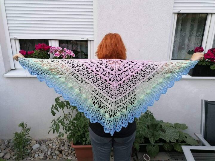 Für das Tuch wurde Bobbel "Froschwiese" von MT.Bobbelwelt verwendet. 1000LL 3Fädig und mit