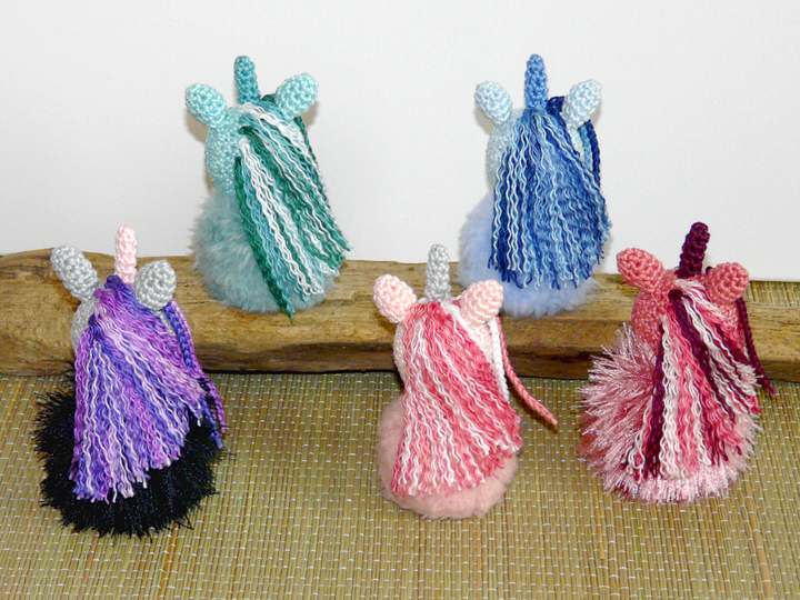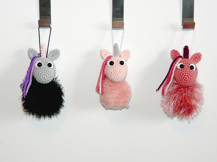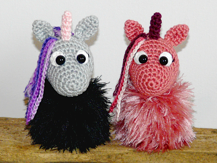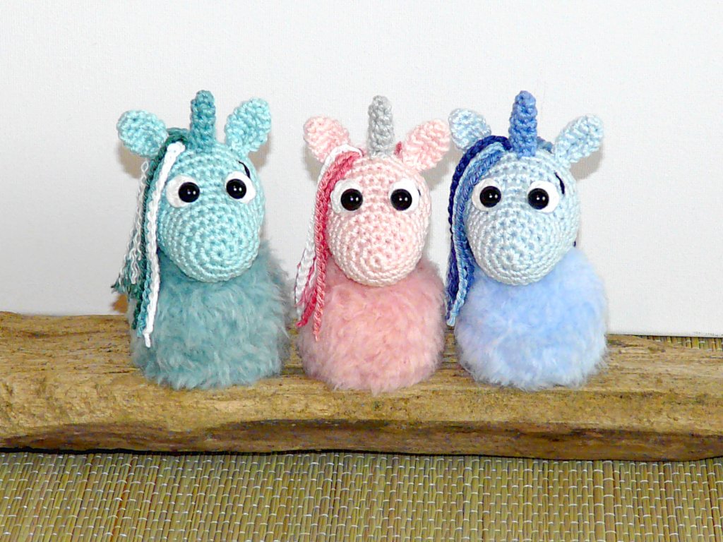 Je nach Garn- und Häkelnadelstärke variiert die Größe von den Einhörnern.