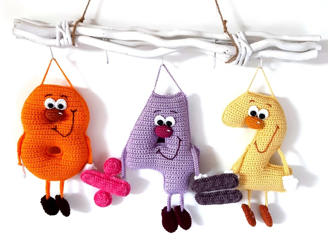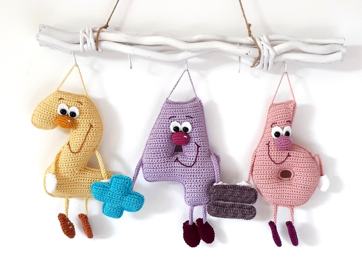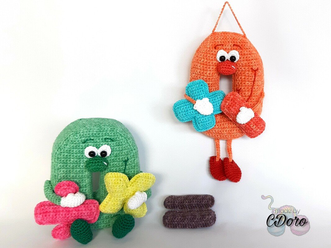Mit dieser PDF erhalten Sie eine Häkelanleitung für die Nummer 0 in einer stehenden Variante und in einer hängenden Variante, sowie für die Rechenzeichen Plus, Minus, Mail, Geteilt und Gleich.