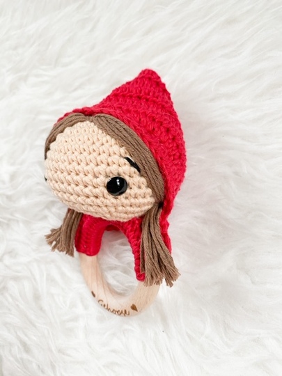 Mit dieser Häkelanleitung kannst du deine eigene süße Rotkäppchen-Rassel häkeln.