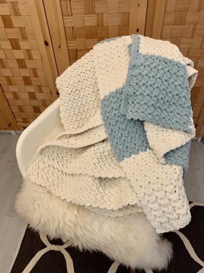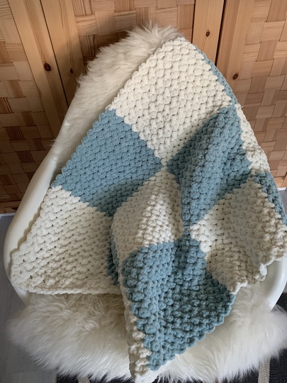 Manchmal möchte man einfach nur schnell ein Geschenk häkeln. Durch die fluffige Chenillewolle ist das gut an einem Wochenende zu schaffen. Das Muster ist extra auf diese Wolle abgestimmt. Es hat durch das Versetzen von Maschenbüscheln, kombiniert mit Reliefmaschen eine ganz plastische Optik und wirkt sehr gemütlich. In der Beschreibung findest du die Babydecke mit und ohne Farbwechsel (ohne Farbwechsel ist sie auch für weniger Versierte möglich), aber auch die Angaben für eine Kuscheldecke. Eine Kuscheldecke ist allerdings durch ihre Größe nicht so schnell fertig.