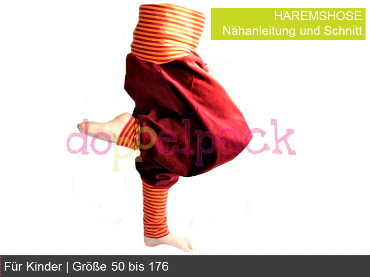 Das Besondere an dieser Anleitung ist, dass Du die Haremshose problemlos nach den individuellen Maßen Deines Babys/Kindes nähen kannst, sie also perfekt passen wird.