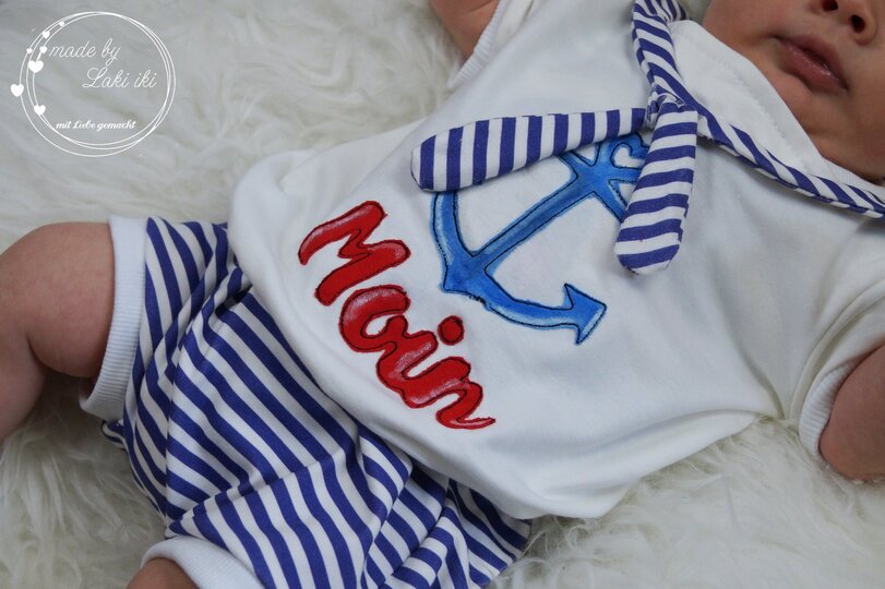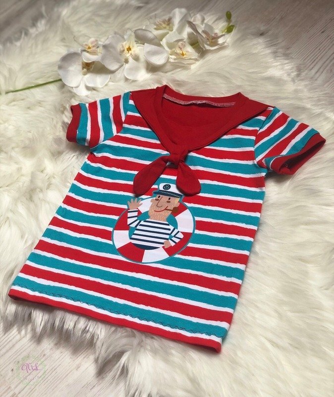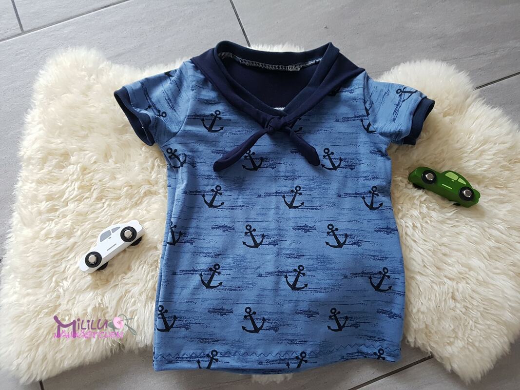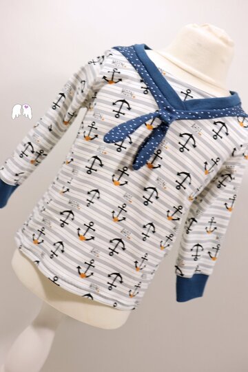 Ahoi! Wir stechen jetzt zwar nicht in See, aber optisch dafür umso me(e)hr ;o) . Das maritime Shirt „Magnus“ ist ein Shirt in Matrosenlook, welches du von Gr. 62 – 92 nähen kannst: die Körperteile in Doppelgrößen, die Ärmel in Einzelgrößen für die optimale Passform.