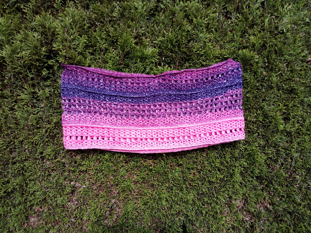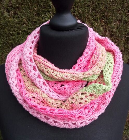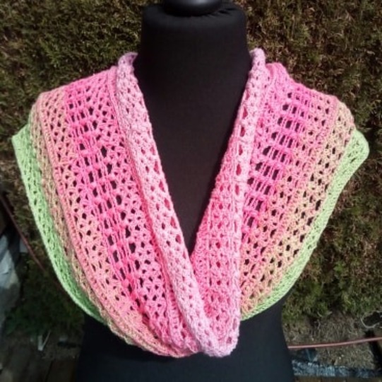 Es handelt sich um den Loop / Schal Lilie - Frühlingshexe mit besonderem Muster vom Hexentopf-Farbverlauf.