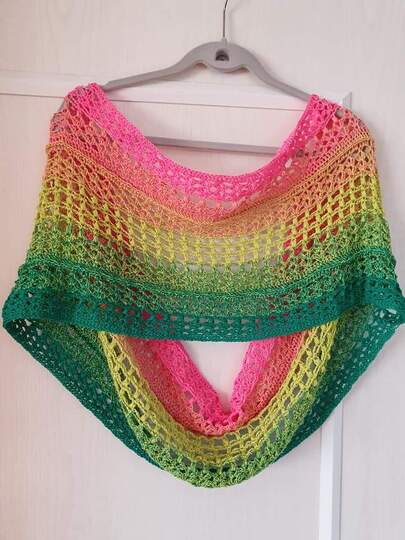 Gearbeitet wurde dieser Loop /Schal mit einer 3 er Häkelnadel. Verarbeitet habe ich 3 fädiges Farbverlaufsgarn Verbraucht habe ich ca. 600 LL.