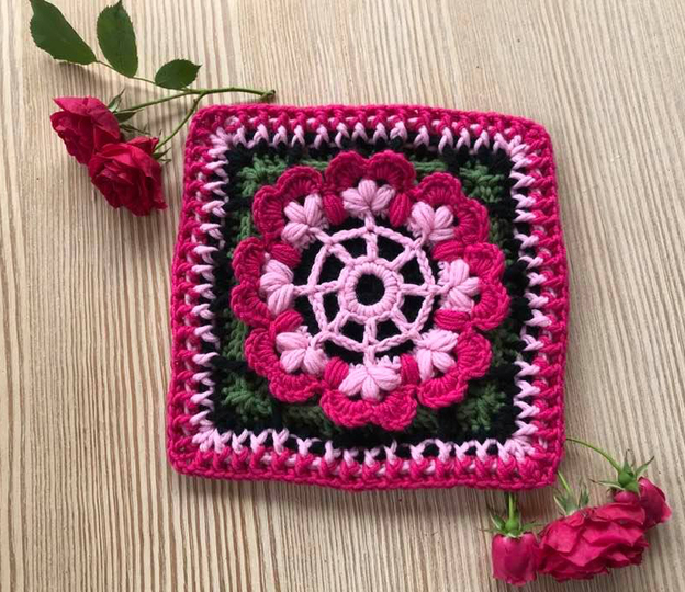 Granny "KRIMIBlume" sieht doch bezaubernd aus..es hat einen spannenden Mittelpunkt und dann folgt ein Blättermuster....und was man aus dem Granny alles machen kann: Decken, Kissen,Taschen, Untersetzer ...Mittelteile für Kleidung.....