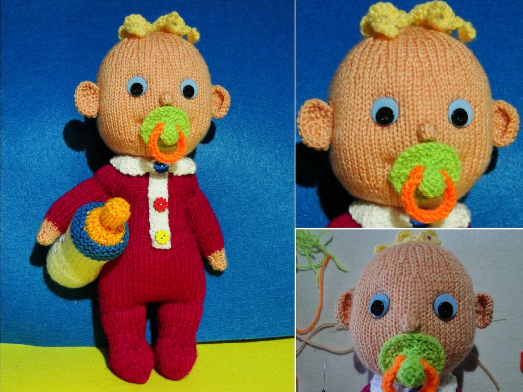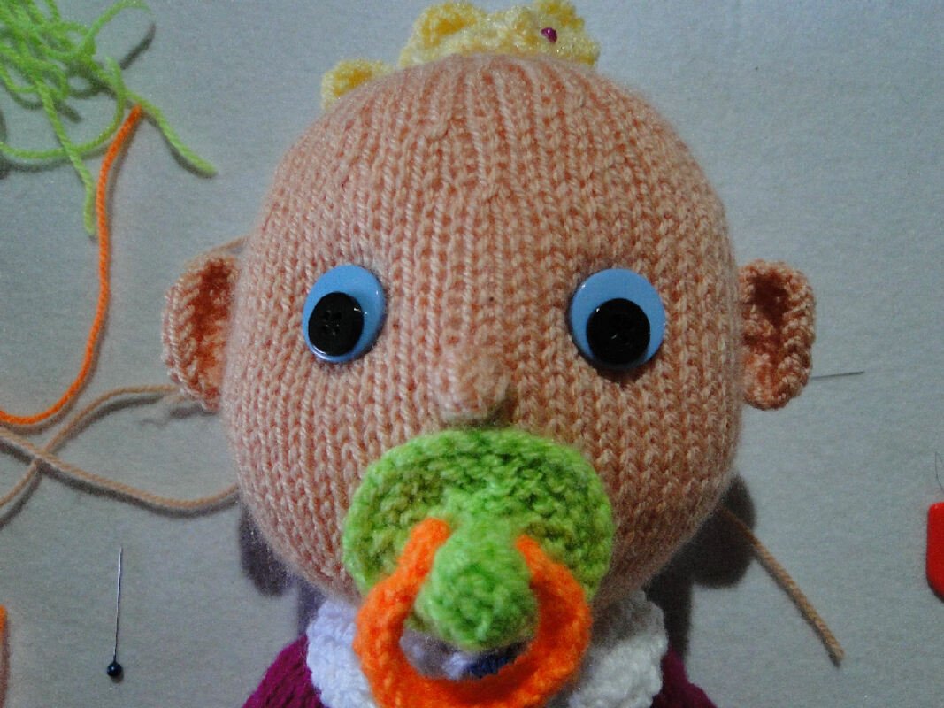 This pattern is of medium difficulty, knitted flat (back and forth) on single pointed needles. 24 pages of pattern with 61 photos to well understand the execution, written row by row instructions. The pattern includes feeding bottle instructions. Knitting stitches used: stockinette stitch (stocking st.), cast on, cast off/bind off, decrease 2 stitches together, increase (knit front back KFB), garter stitch.