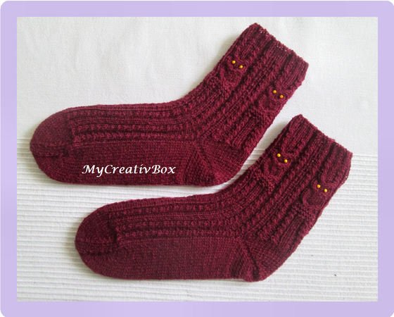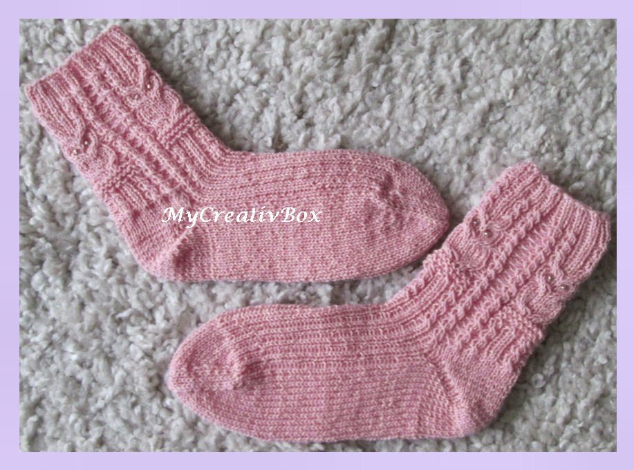 In der Anleitung werden Ferse und Spitze nicht näher erläutert; diese werden in gewohnter Arbeitsweise gestrickt.