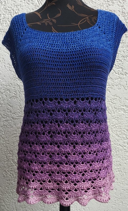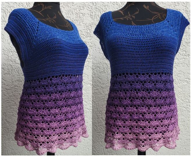 Es ist eine Häkelanleitung für eine luftige Sommertunika, die in allen Damengrößen nachgearbeitet werden kann.