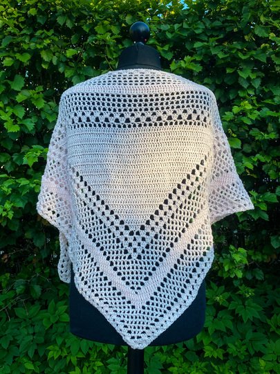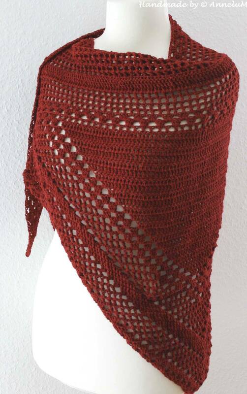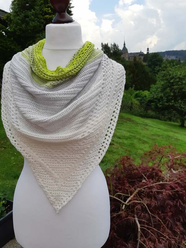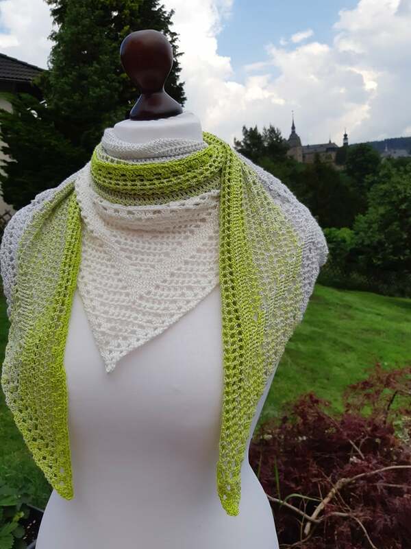 Das Tuch kann mit jedem Garn und Wohlfühlnadelstärke beliebig Gross gehäkelt werden.