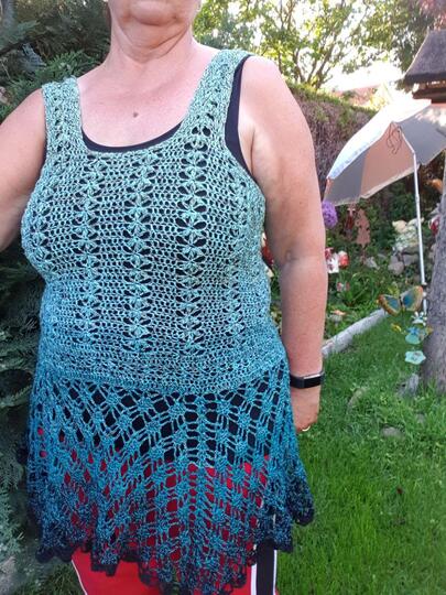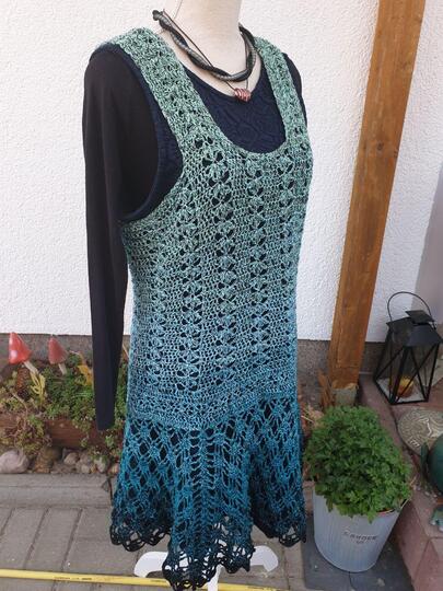 Beim vorgestellten Produkt handelt es sich NICHT um das fertig gehäkelte Kleidungsstück, sondern um eine Anleitung in Schriftform mit Häkelschrift, um dieses Kleidungsstück selbst zu häkeln.