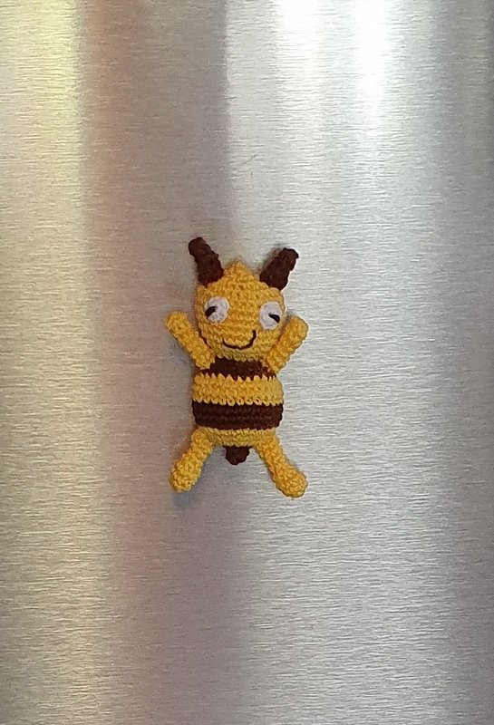 Sie ist auch für Anfänger geeignet, wenn Sie sich nicht scheuen etwas knifflig häkeln zu müssen, da das Bienchen mit Filethäkelgarn und Nadel 1 gehäkelt wird. Selbstverständlich kann man aber auch dickere Wolle und dementsprechend eine größere Nadel benutzen. So wird das Bienchen aber größer und der Magnet hält evtl. nicht.