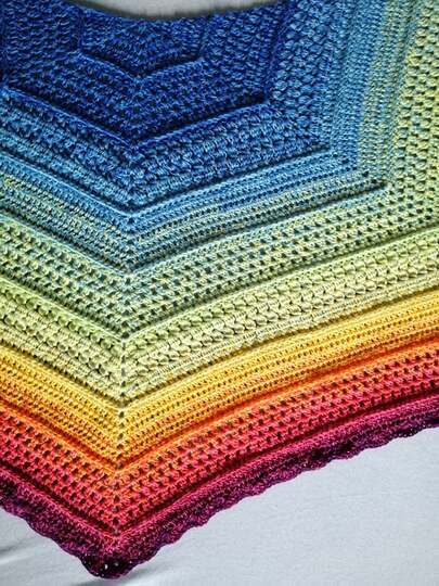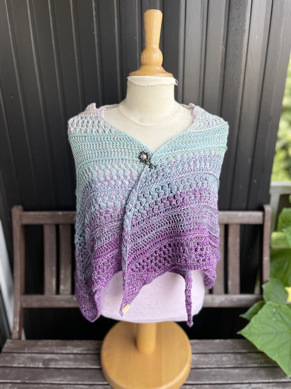 Für kühlere Sommerabende ist dieses Fünfecktuch genau richtig. Durch seine Form ist es schön anschmiegsam und ideal als Schultertuch zu verwenden. Aber auch als Halstuch in der kälteren Jahreszeit ist es bestens geeignet.