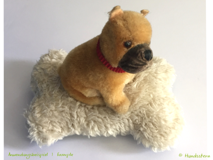Die Knochenform zeigt ganz klar wem's gehört und läßt sich durch optionale Verzierung mit Schrägband oder Paspelband noch hervorheben.