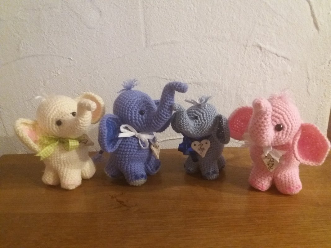 Je nach Wolle und Häkelnadel werden die Elefanten unterschiedlich groß.