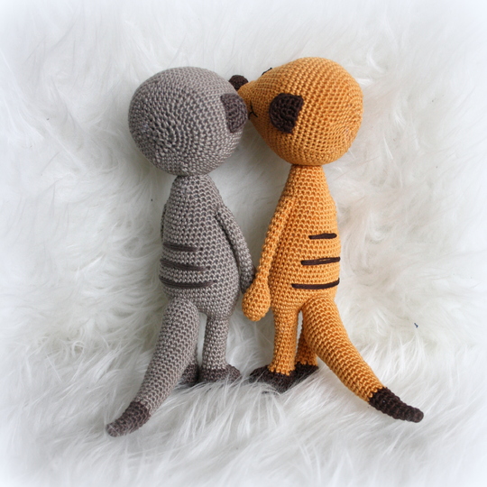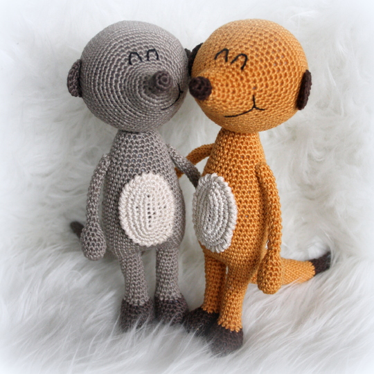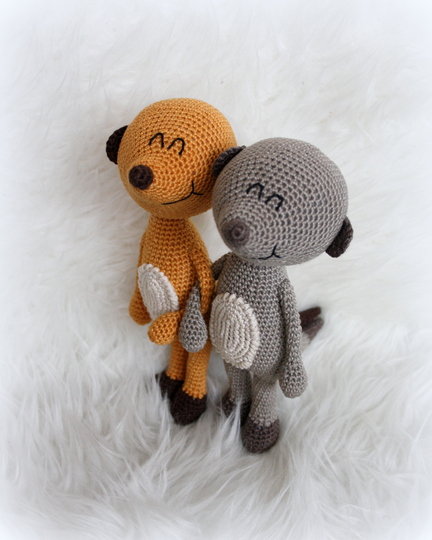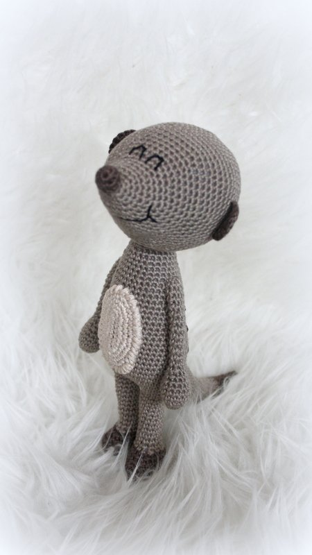 Wenn du mit Baumwolle (125m LL auf 50g) häkelst, wird dein Grinseerdmännchen ca. 25cm hoch.