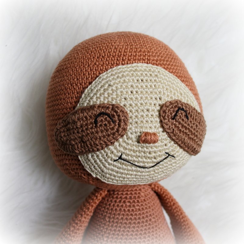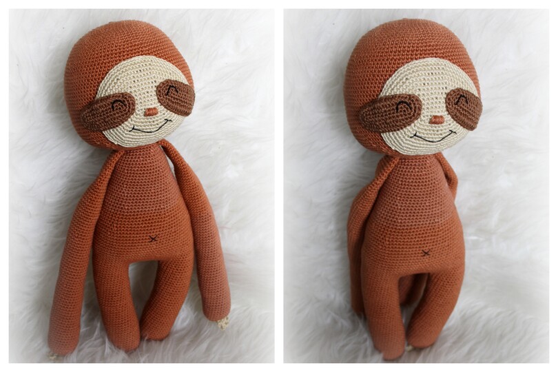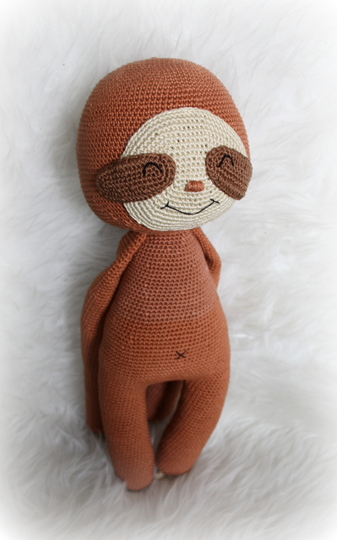 Wenn du mit Baumwolle (125m LL auf 50g) häkelst, wird dein großes Grinsefaultier ca. 38cm hoch.