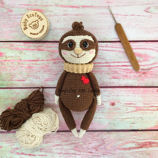 • A thin yarn with metric area 50 g / 240 mt (or moulinet thereads) for embroidering and decorating of the face and eyes of black, white and brown color (I used Vita coco)