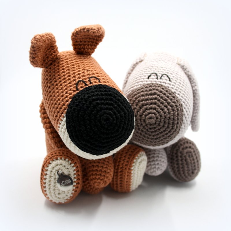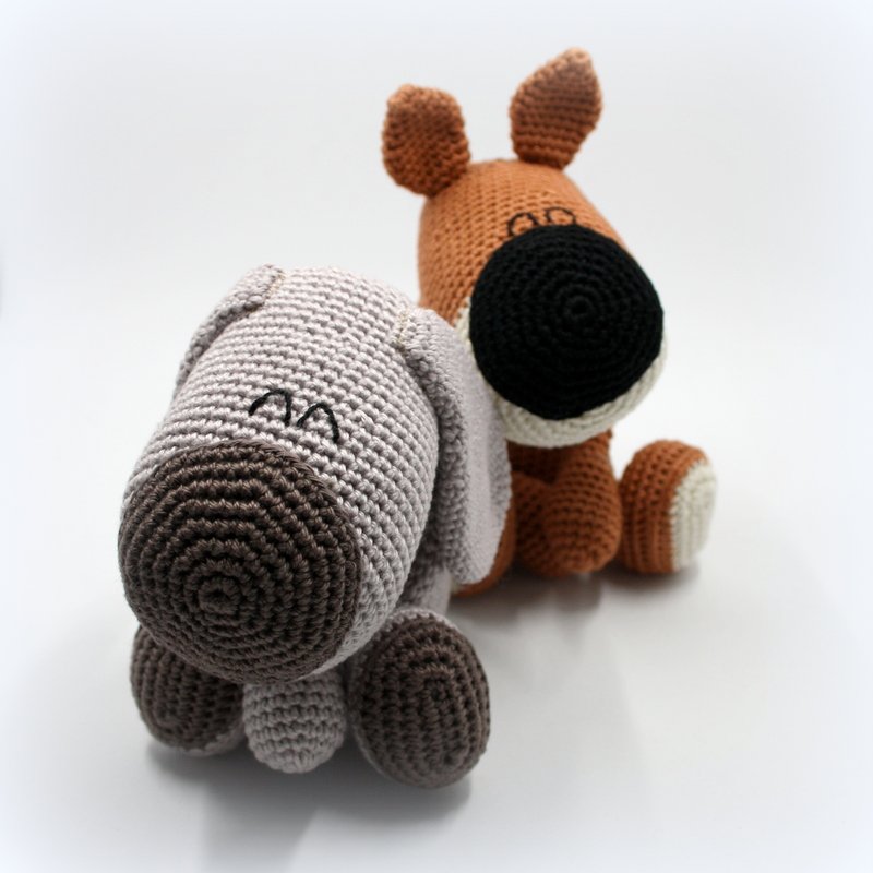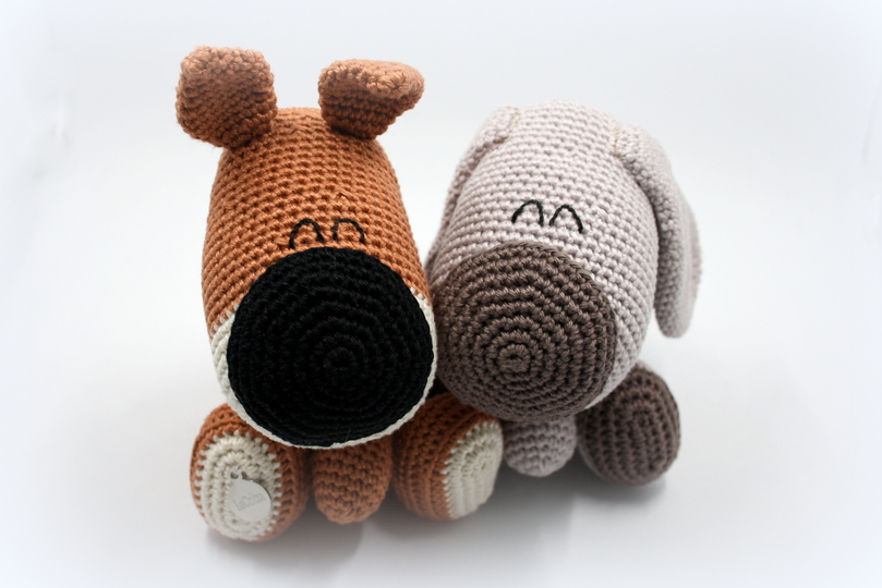 Wenn du mit Baumwolle (125m LL auf 50g) häkelst, wird dein Grinsehund ca. 13/16cm hoch.
