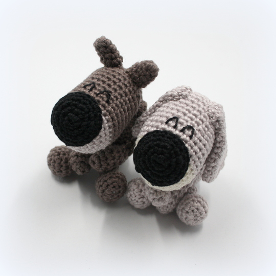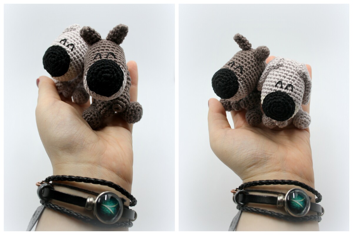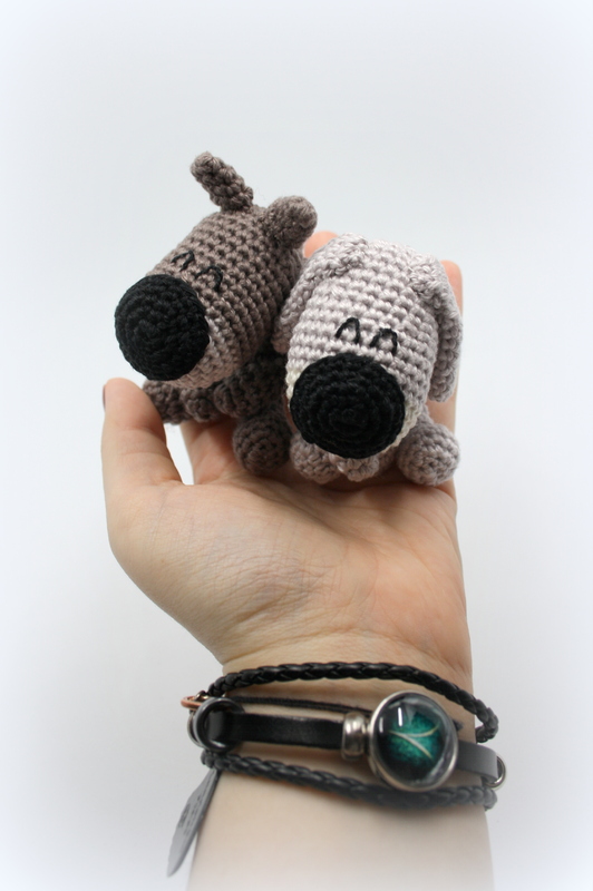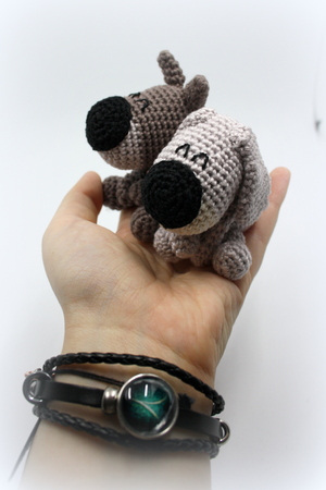 Wenn du mit Baumwolle (125m LL auf 50g) häkelst, wird dein Mini-Grinsehund ca. 8 bis 9cm hoch.