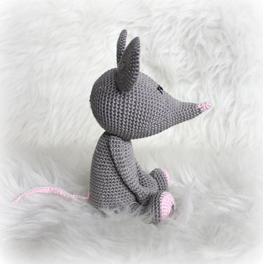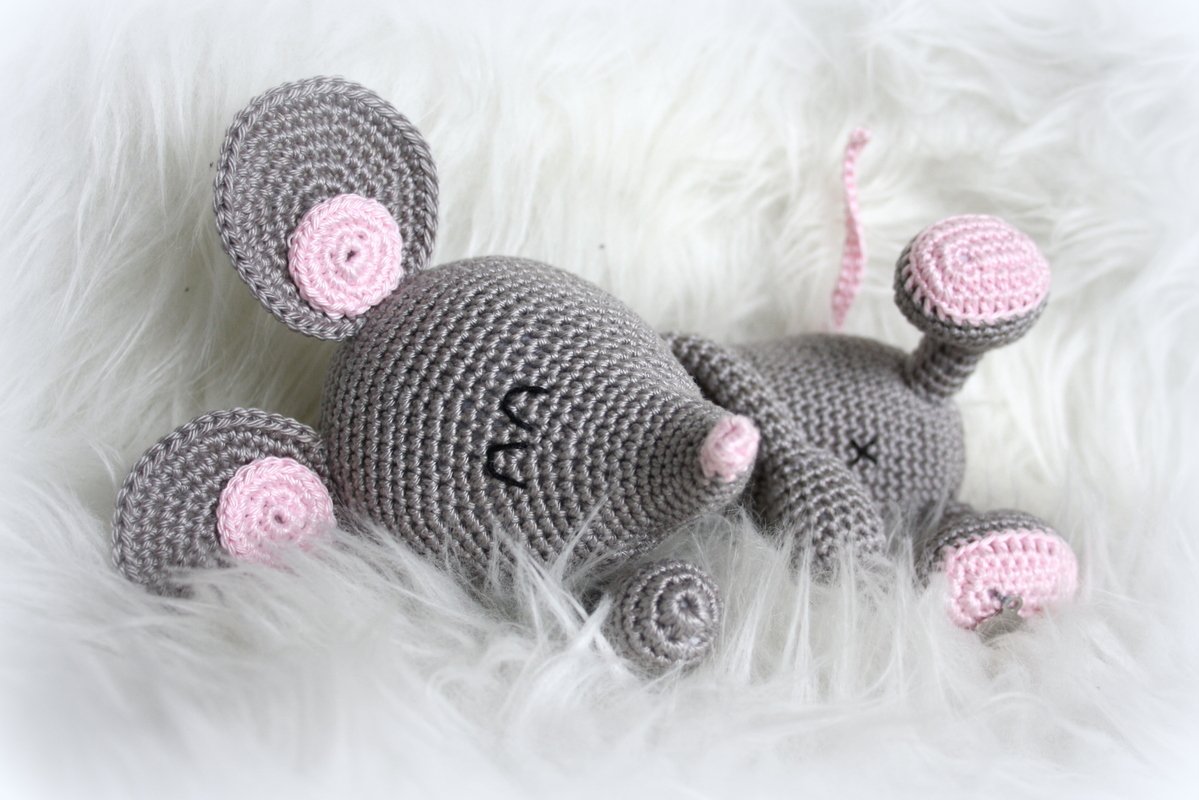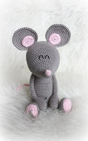 Wenn du mit Baumwolle (125m LL auf 50g) häkelst, wird dein Grinsemaus ca. 20cm hoch.