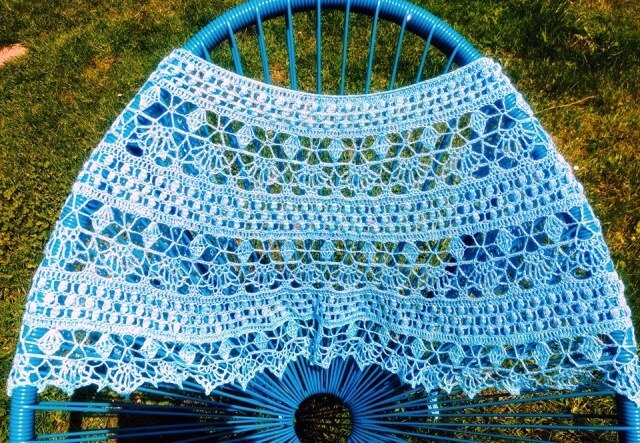 Das Tuch kann je nach Garn und Nadelstärke verschieden groß ausfallen.