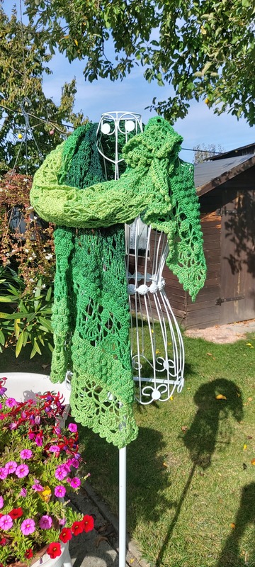 Als Bonus ist auch eine Häkelschrift für eine Stola in verschiedenen Breiten beigefügt.