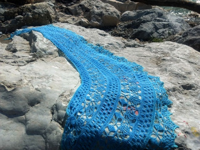 Das Häkeltuch Botswana ist sichelförmig. Dadurch lässt es sich wunderbar drapieren.