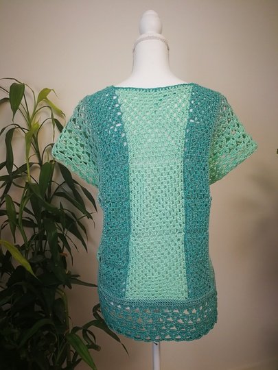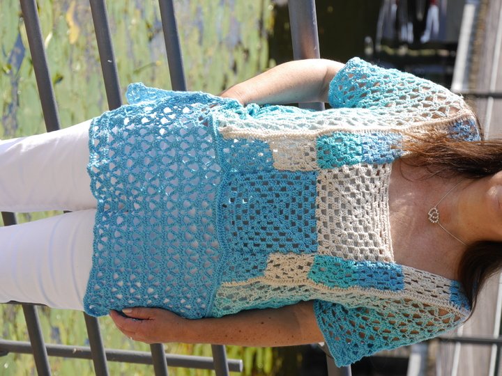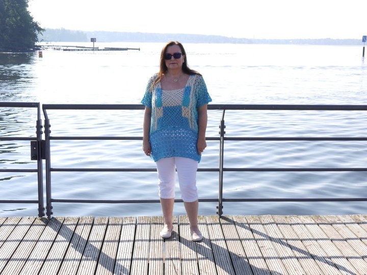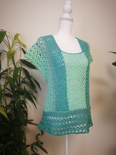 Eine bezaubernde Sommertunika aus Resten von Farbverlaufsgarnen oder auch uni Garnen .Dieses Modell schaut in allen Größen schick aus.Wer die Fäden schon zu Arbeitsbeginn gleich mit einhäkelt, hat später weniger zu vernähen.