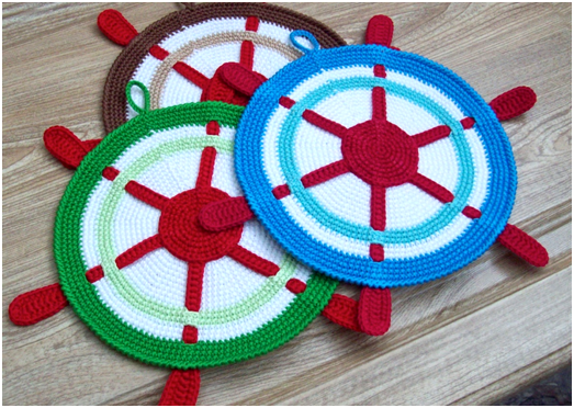 Schiffssteuerrad - https://www.crazypatterns.net/de/items/62783/212de-haekelanleitung-schiffssteuerrad-topflappen-pdf-zabelina-etsy