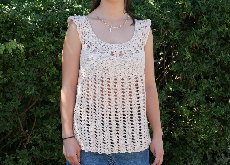 Die Anleitung für das Häkelhemd Nadia ist für die Größe S/M geschrieben.