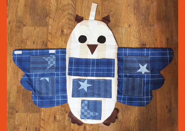 Am Ende der Anleitung befindet sich ein Schnittmuster zum selbst ausdrucken. Die fertige Ordnungseule wird ca. 38 x 74 cm groß sein.