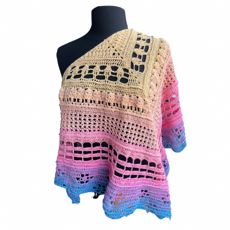Das Tuch kann aber auch größer gearbeitet. Tipps zur Erweiterung sind ebenfalls in der Anleitung enthalten.