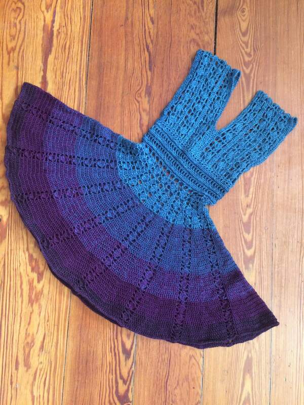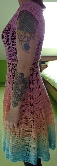 Das Kleid Queenie ist, aufgrund seiner Arbeitsweise, bestens für Farbverlaufsgarn geeignet.