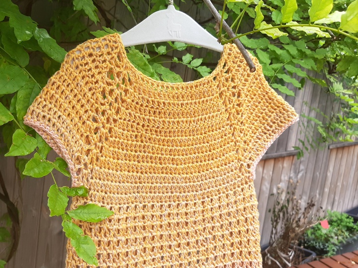 Der Garnverbrauch für die einzelnen Größen für ein Kinderkleid oder Tunika mit kurzen Ärmeln (wie Bild):