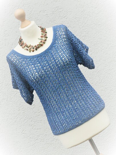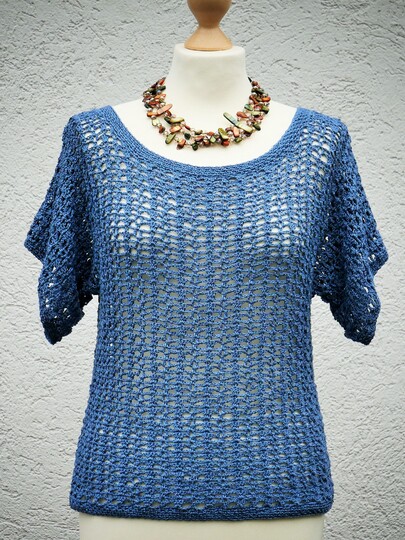 Das Häkeltop Beryl ist ein schlichtes sommerliches Top. Ob zur Jeans oder zum Rock, es kann vielfach kombiniert werden. Von unten nach oben gearbeitet, besteht das Häkeltop Beryl aus zwei identischen Teilen, da die Ärmel direkt an das Vorder, bzw. Rückenteil gehäkelt werden.