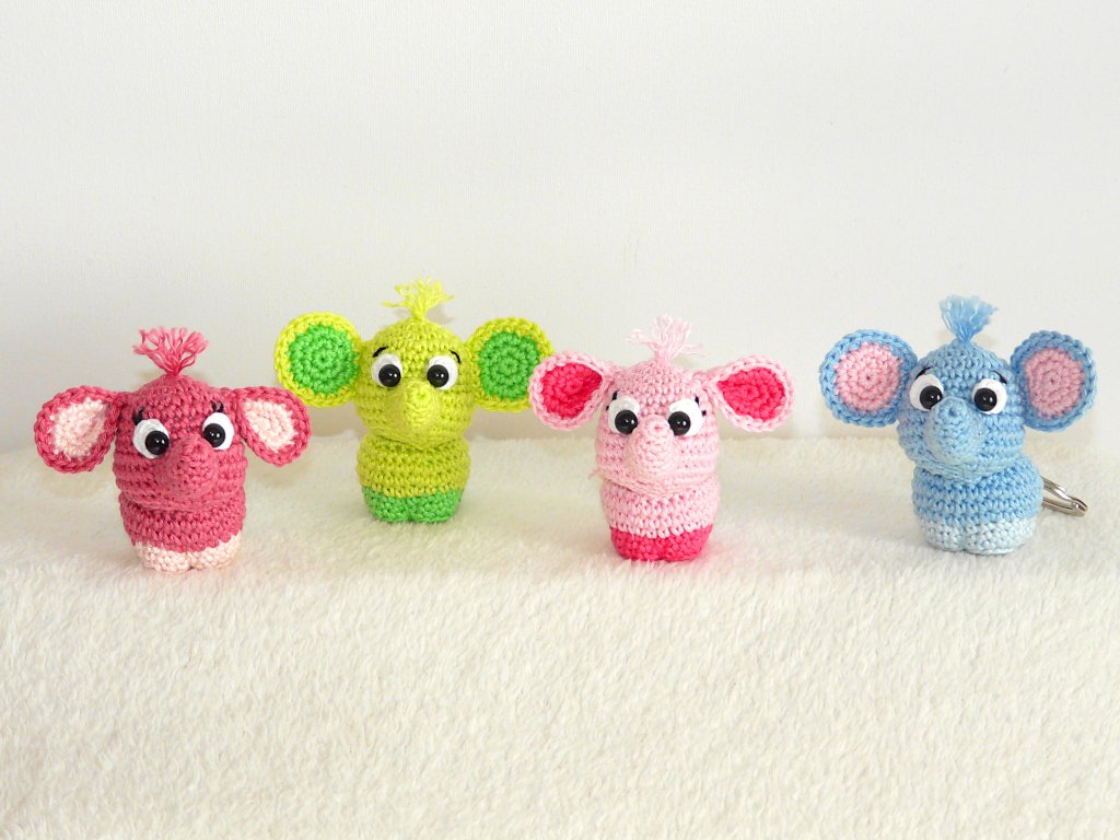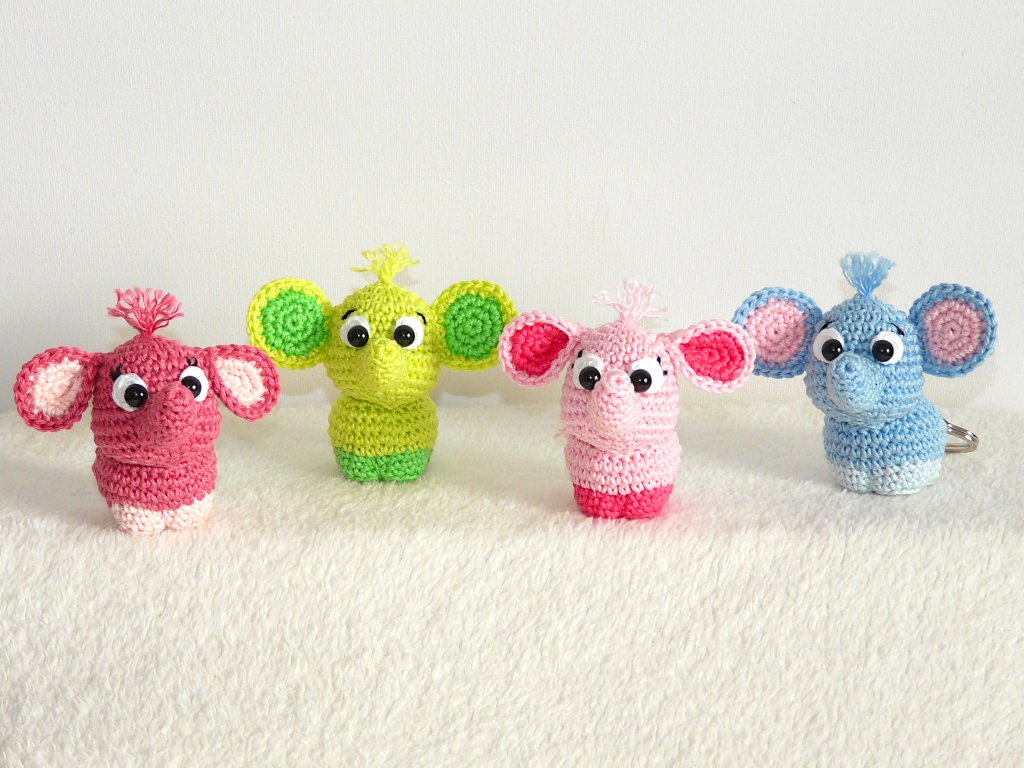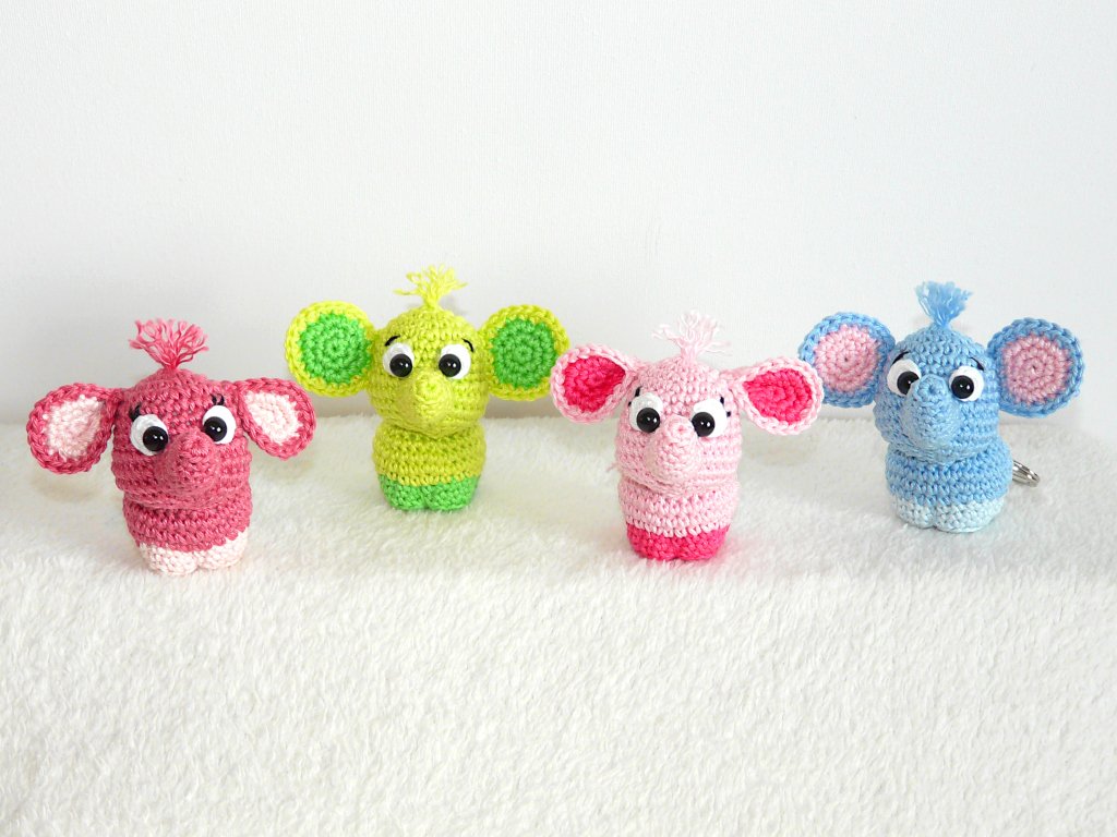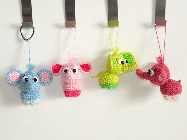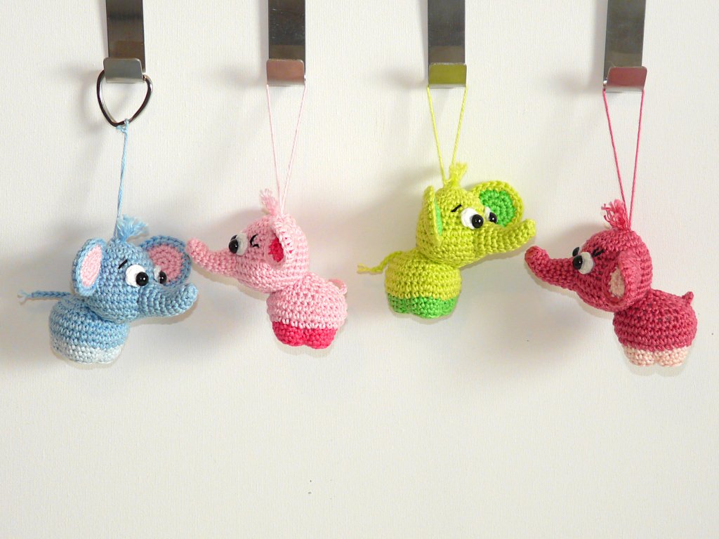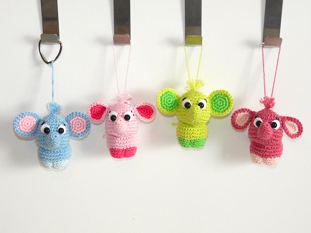 Nachdem ich bereits einen XXL Elefanten in meinem Shop habe, wollte ich mal einen Mini Elefanten häkeln :) Herausgekommen sind diese zuckersüßen kleinen Elefanten. Sie sind die perfekten Schlüsselanhänger oder Taschenbaumler. Und mit ihren putzigen Gesichtern zaubern sie jedem ein Lächeln ins Gesicht.