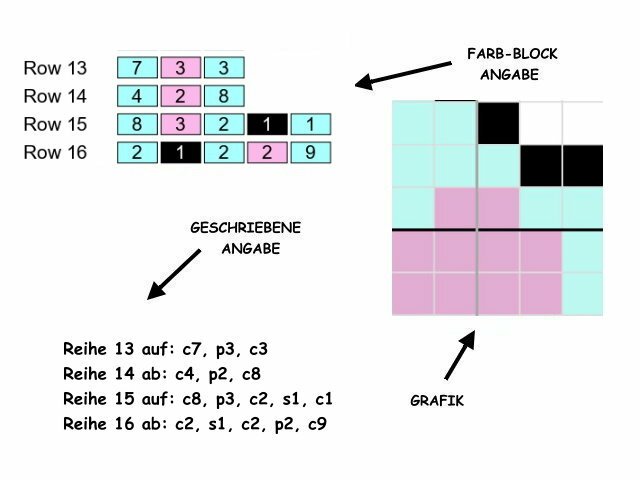 -farbige Zahlen-Blöcke für jede Zeile für C2C-Technik