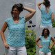 Tolles Sommershirt mit extravagantem V-Ausschnitt und Bindeband am Rücken. Das Muster ist ein echter Hingucker, braucht aber etwas Häkelerfahrung. Das Modell ist ganz leicht an alle gewünschten Längen und Breiten anzupassen – die Angaben in der Anleitung beziehen sich auf Gr. S/M und L/XL.