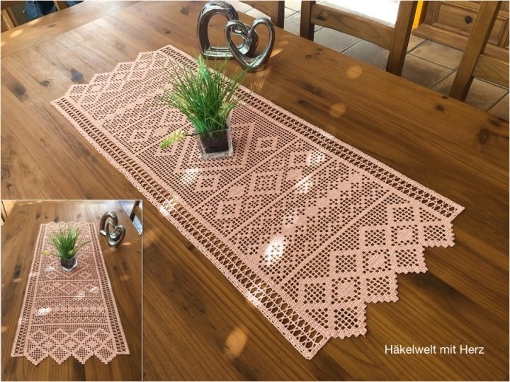 2.das Zählmuster, die Häkelschrift für die Ränder und eine kurze Erklärung zum Filethäkeln