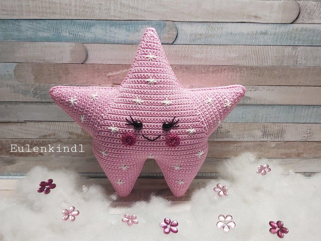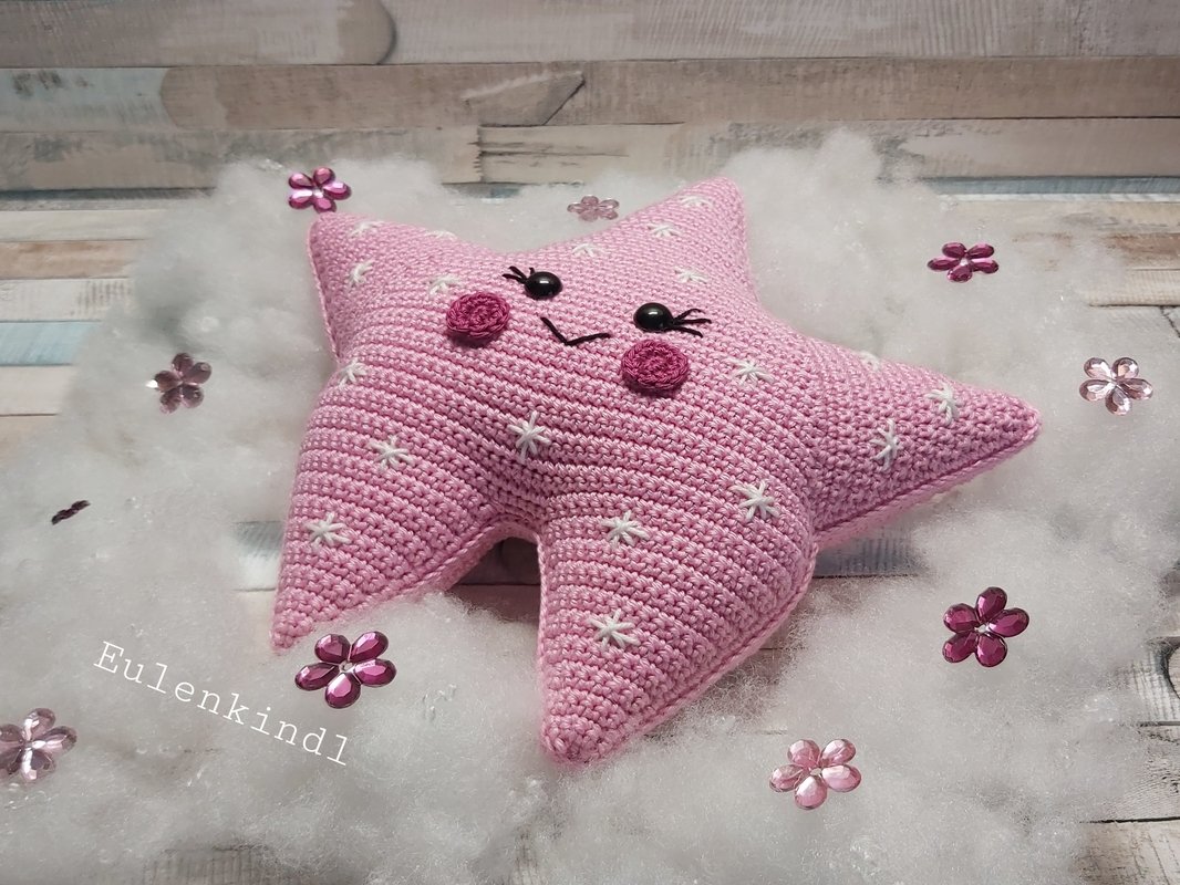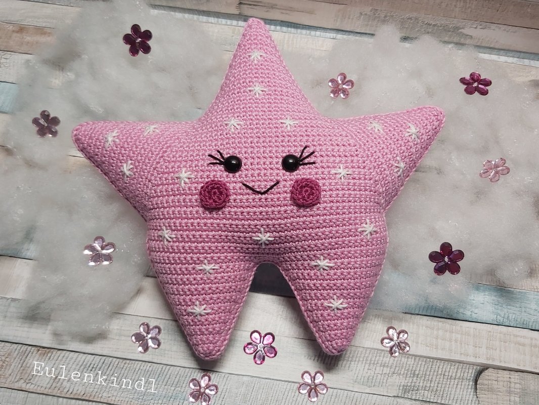 Das Schmuse-Sternchen wurde mit Baumwollgarn (50g-125m) und einer 2,5 Nadel gehäkelt.