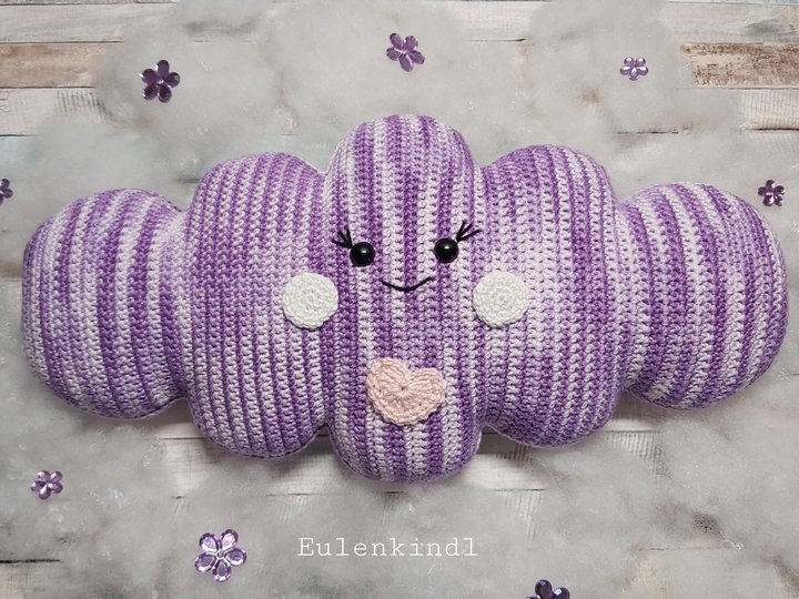 Das Schmuse-Wölkchen wurde mit Baumwollgarn (50g-125m) und einer 2,5 Nadel gehäkelt.