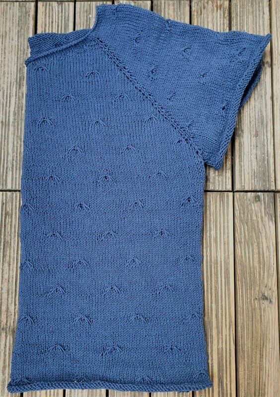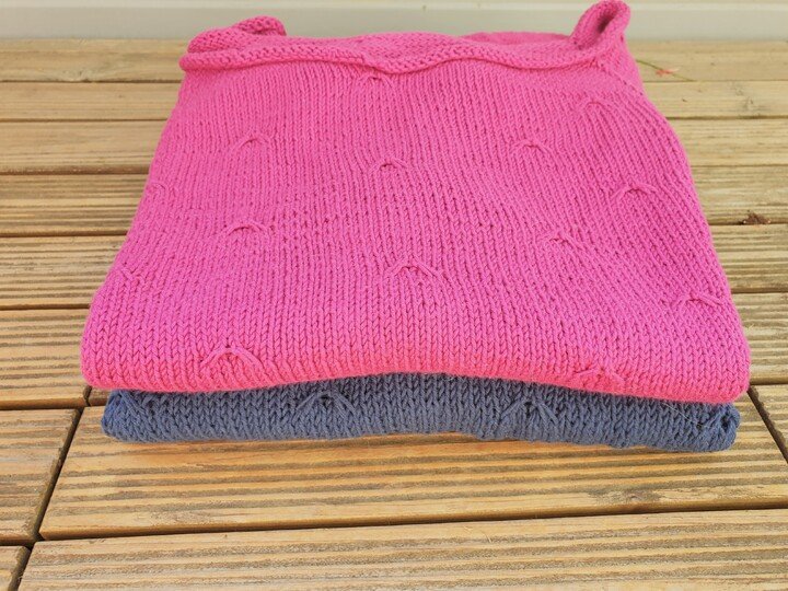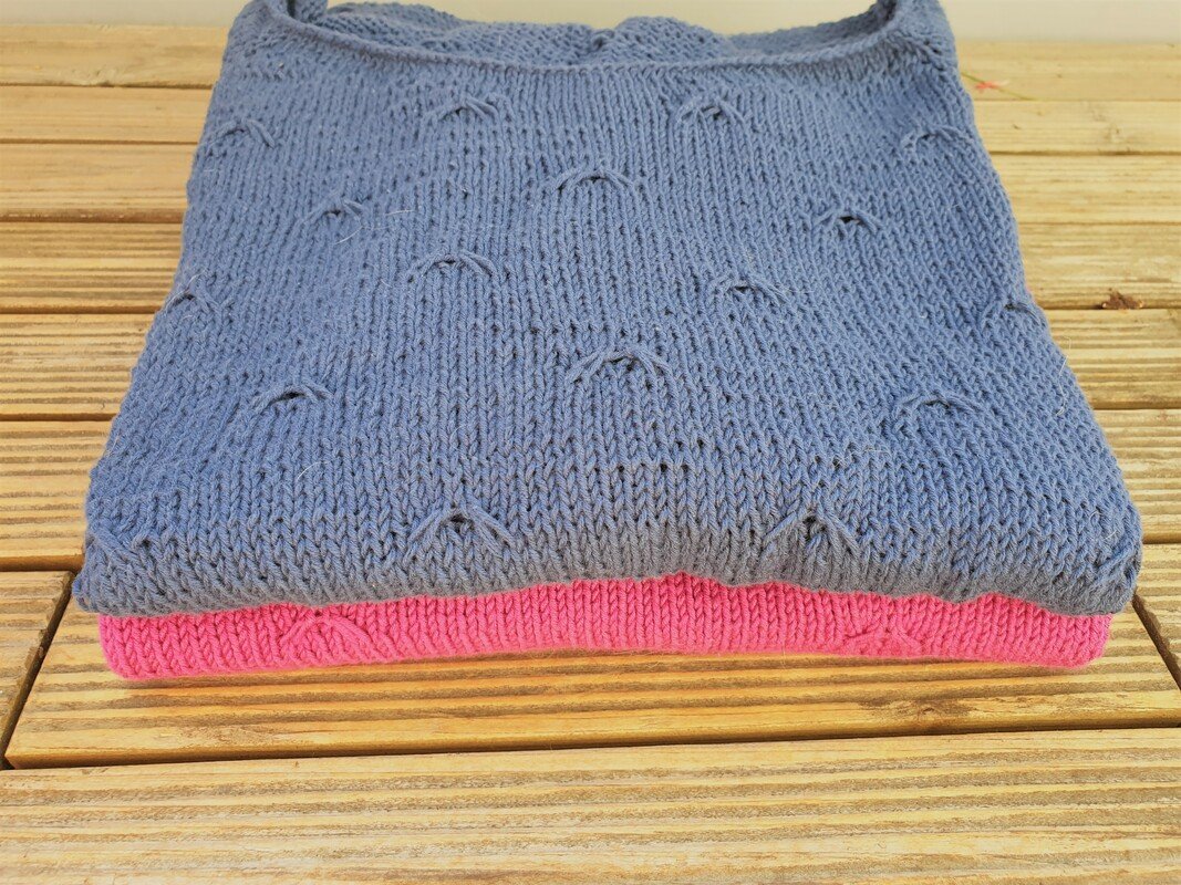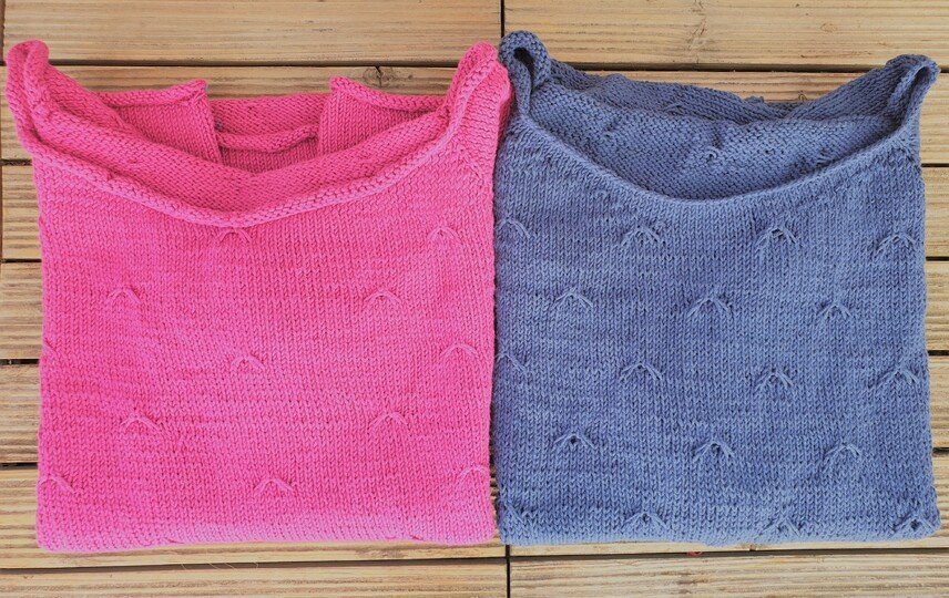 Es handelt sich um eine One-Size-Anleitung. Bei Einhaltung der Maschenprobe ist das Shirt ist 46 cm breit und 55 cm lang.