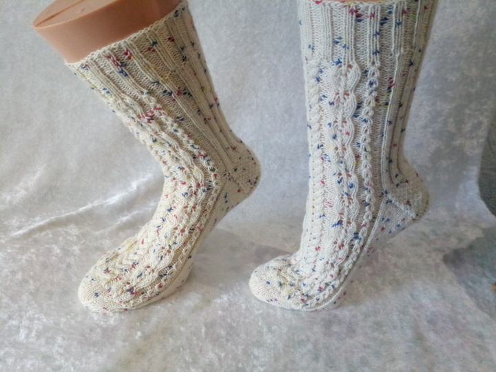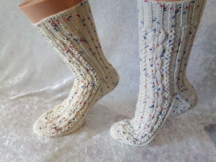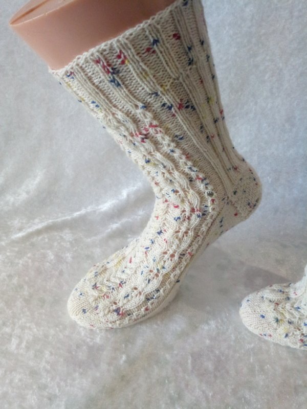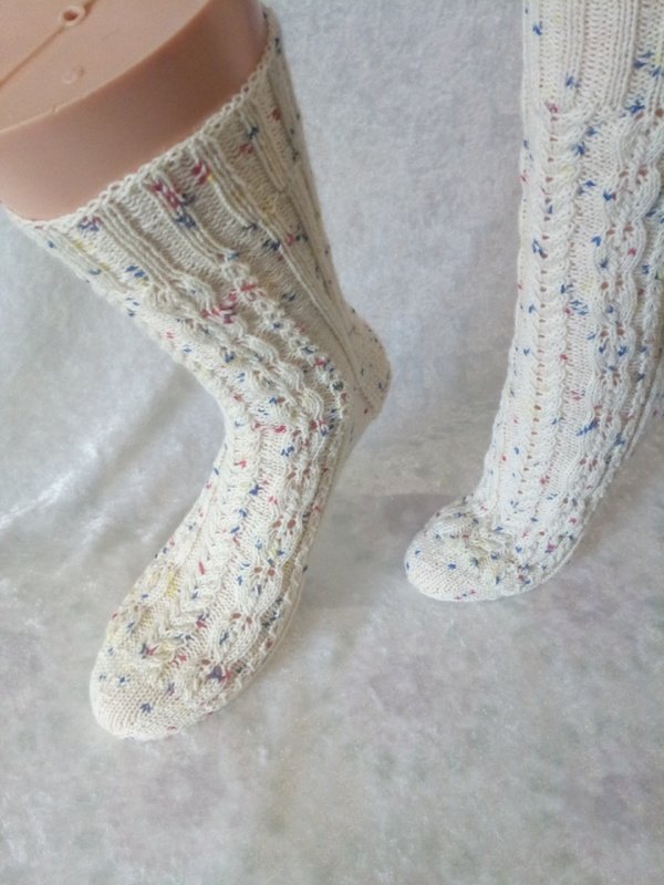 Genau richtig für die ganze Familie oder als stylisches accessoires an ihren Füßen. Die Socken können an verschiedene Schuhgröße angepasst werden, da Charts als auch schriftliche Instruktonen für 56 bis 72 Maschen zur Verfügung stehen. Dieses Muster kann von geübten Strickerinnen sehr gut bewältigt werden. Für Anfänger stellen diese Strümpfe eine Herausforderung dar.