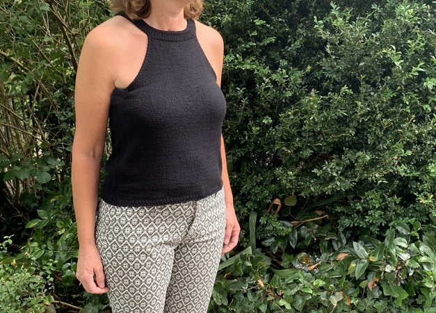 Das Top geht schnell zu stricken, es sitzt und gefällt mir richtig gut. Das dünne Baumwollgarn fühlt sich auf der Haut super angenehm an. Es ist mal etwas anderes.