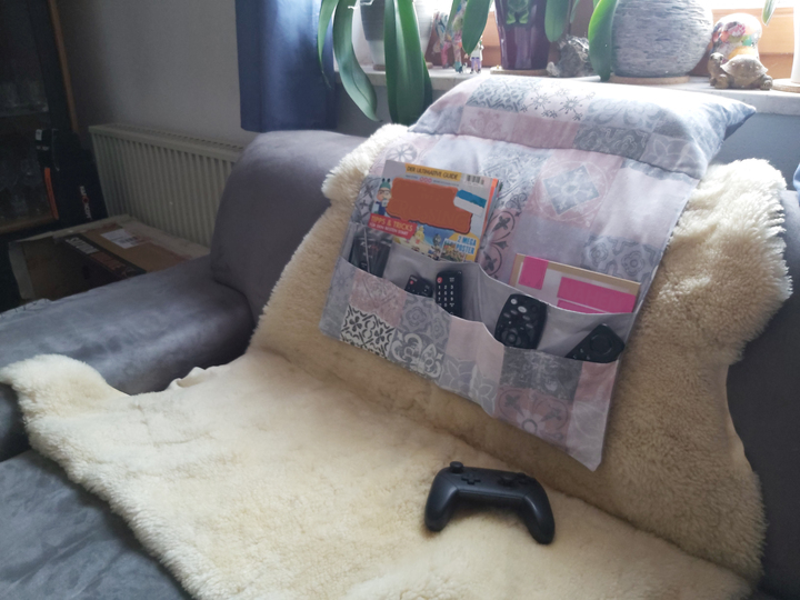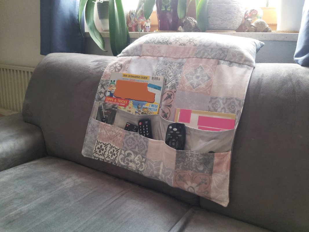 Die Sofaliebe ist ganz anders als gewöhnliche Sofaorganizer. Sie Kombiniert ein komfortables Dinkelspelzkissen mit einem Staufach für Zeitschriften, Fernbedienungen und Snacks.