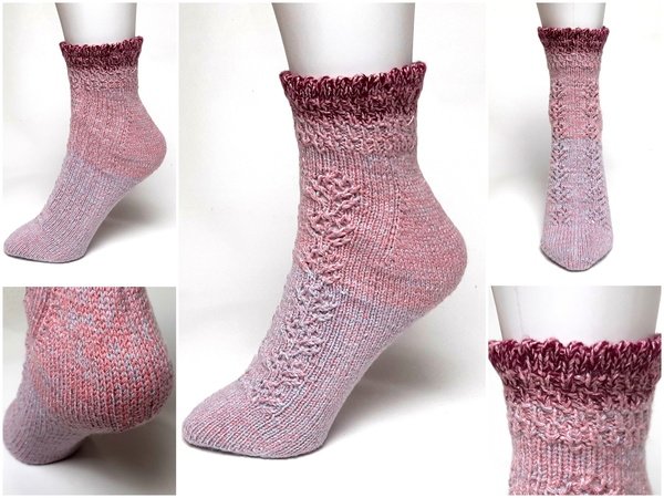 Die Toe-Up Socke Fixen Ferse "Blümchen" kann wahlweise mit oder ohne Muster gestrickt werden.