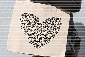 Eine Plotterdatei mit vielen Muscheln die das Herz im Sommer oder Urlaub höher schlagen lässt.