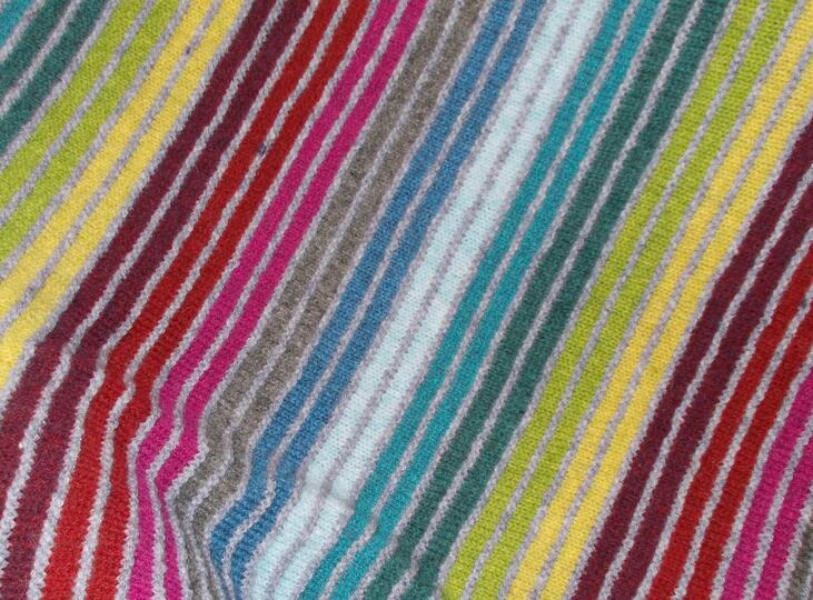 Diese leichte und dennoch kuschelwarme Decke wird sehr bald zu ihrem Lieblingsstück an kühleren Tagen. Sie wirkt durch ihre harmonischen Farben und ist sehr einfach nachzuarbeiten. Erforderliche Vorkenntnisse sind lediglich Maschen anschlagen, abketten und rechte und linke Maschen stricken. Das Umhäkeln ist optional, kann aber auch anders gelöst werden.
